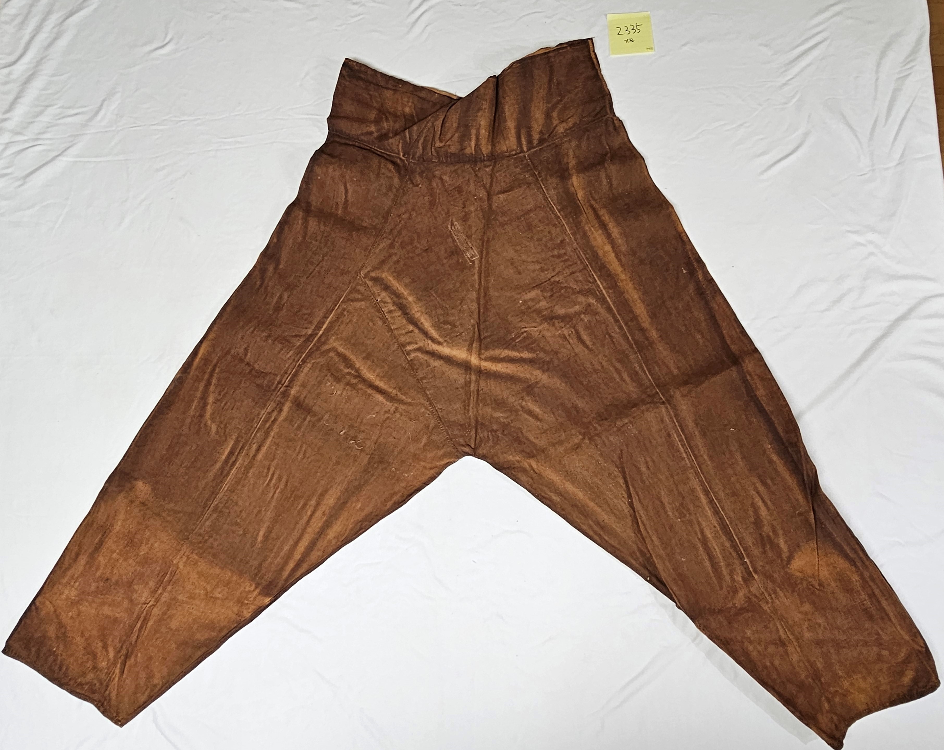 4) 설명: 감물 들인 남성용 하의임. 섬유는 면임. 허리에 말기가 달려 있음.
