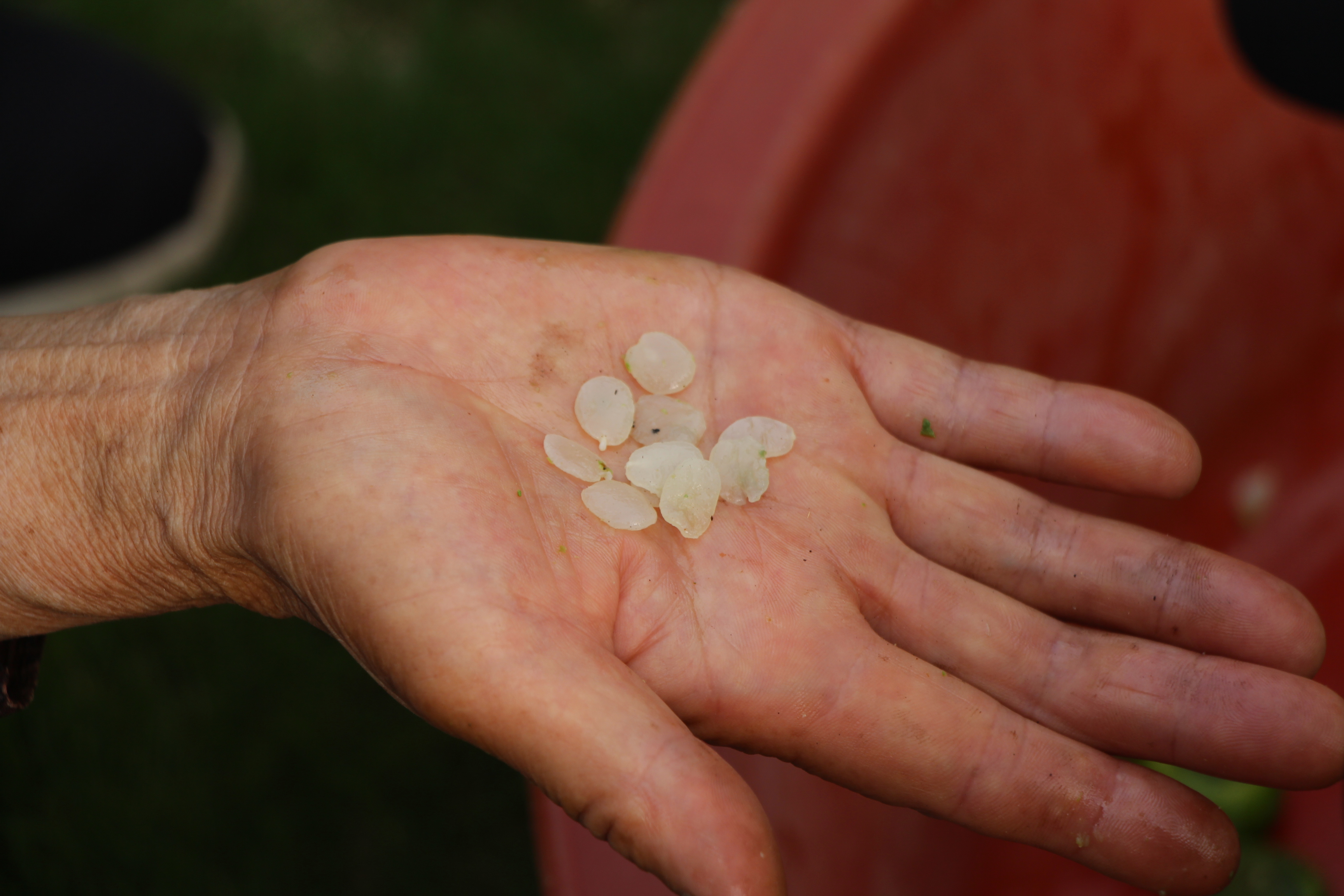 이날 감물들이기 시연을 위해 준비한 풋감을 빻으면서 나온 감씨이다. 풋감을 으깨어 나온 감씨는 하얀색을 띠고 달콤한 맛이 나서 아이들의 특별 간식이 되기도 하였다.
