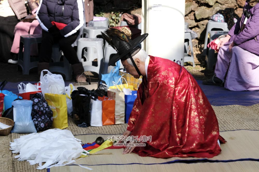 송당리 본향 웃손당 당오름 백주할망당 신과세제(2020년) 김윤수 심방이 초감제 제차를 하는 모습