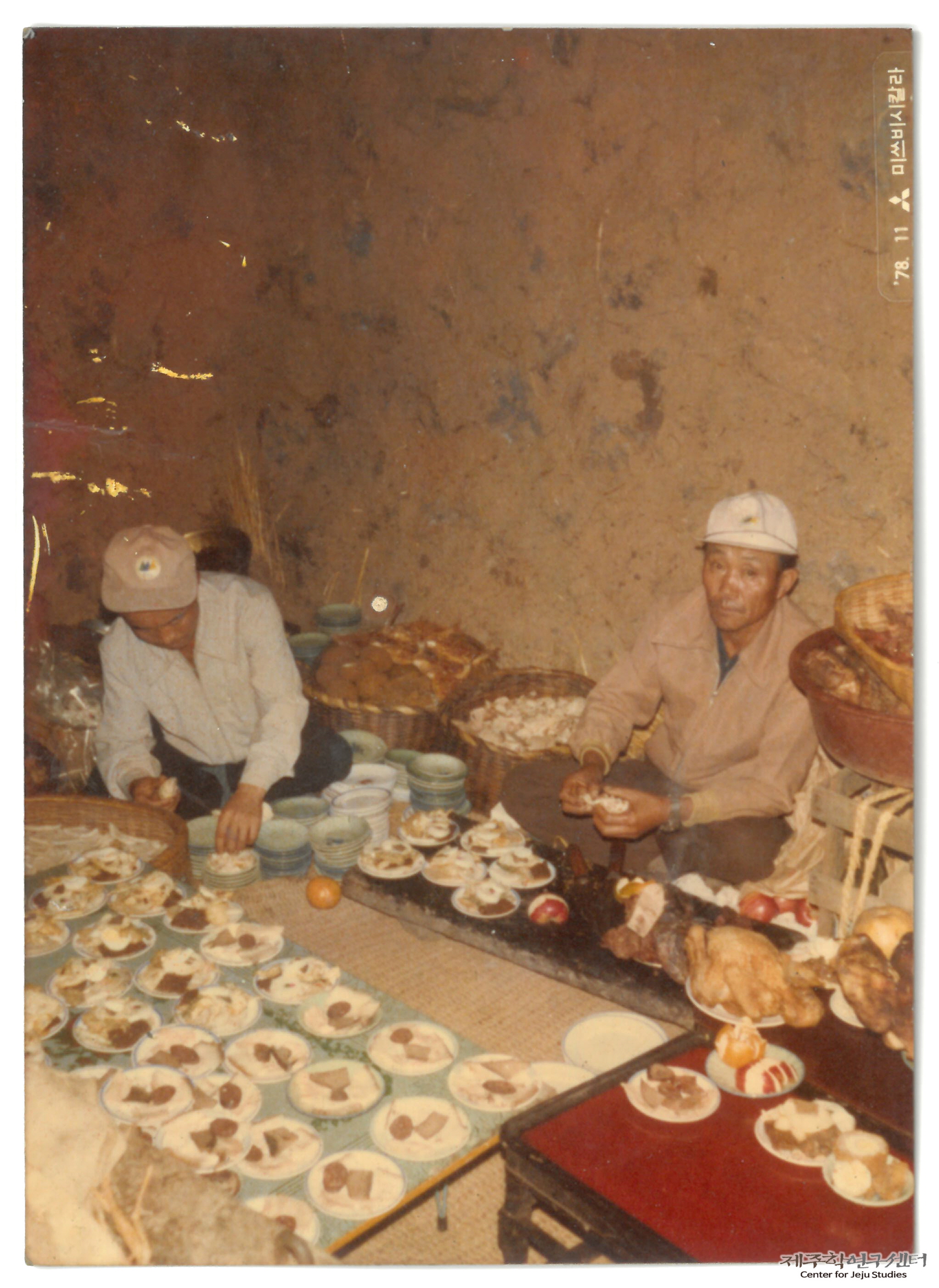 ‘궨당(권당)’의 아들 잔칫날 소장자 고영주 씨가 ‘도감’ 역할을 하는 모습이다. ‘도감’은 혼례나 상례 돼지고기를 썰고 배분하는 등 잔치 전반을 총괄하는 사람으로 주로 남성의 고유한 영역으로 인식하였다.