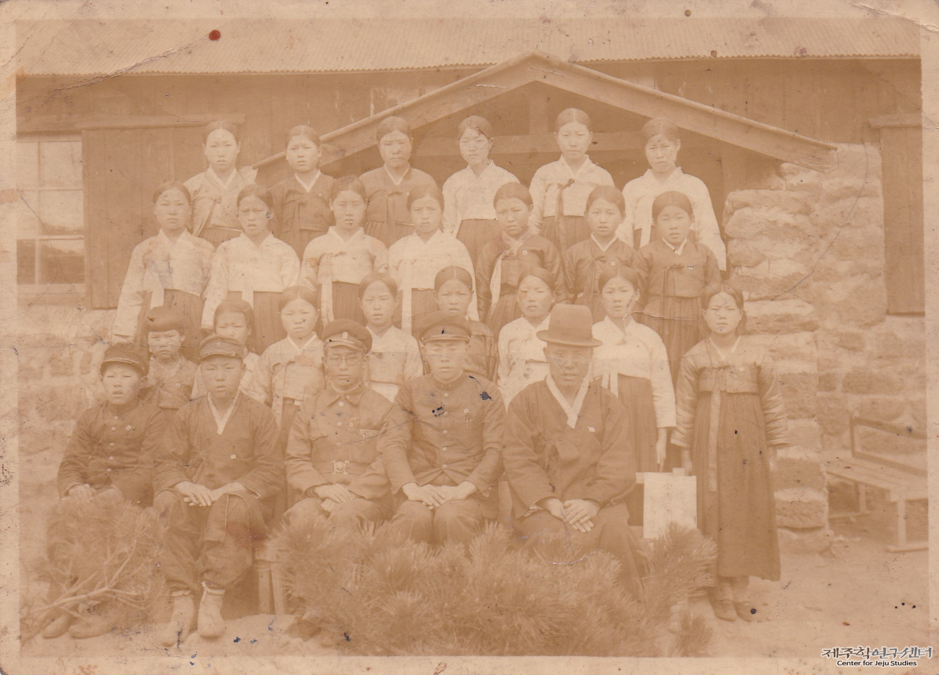 소장자 강홍종 씨 어머니 故고옥규 씨 유년 시절로 추정되는 사진으로 장전리 서당 졸업 기념 사진으로 보인다. 고옥규 씨는 맨 뒷줄 오른쪽 첫 번째 인물 같다. 당시 강홍종 씨의 증조부가 장전리 서당 훈장이었기 때문에 증조부와 어머니가 함께 찍힌 사진으로 여겨진다.