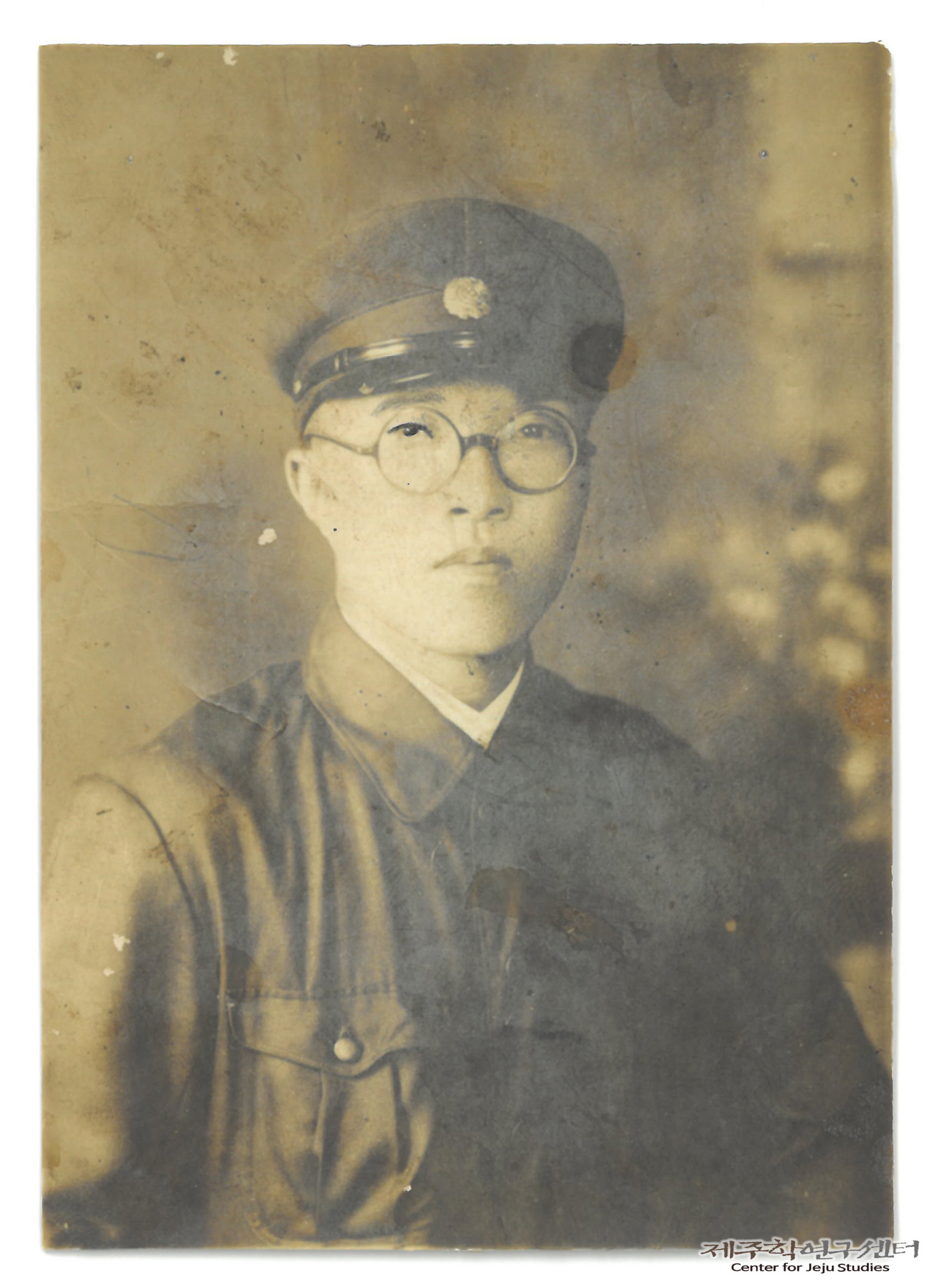 소장자 고영주 씨 큰아버지 사진이다. 큰아버지는 고성간이학교(현 동남초등학교 전신)를 다니다가 태평양전쟁 전에 일본으로 건너갔고 전쟁 나면서 소식이 끊겼다. 일제강점기 특유의 교복과 모자를 갖춰 입은 모습으로 추정하고 있다.