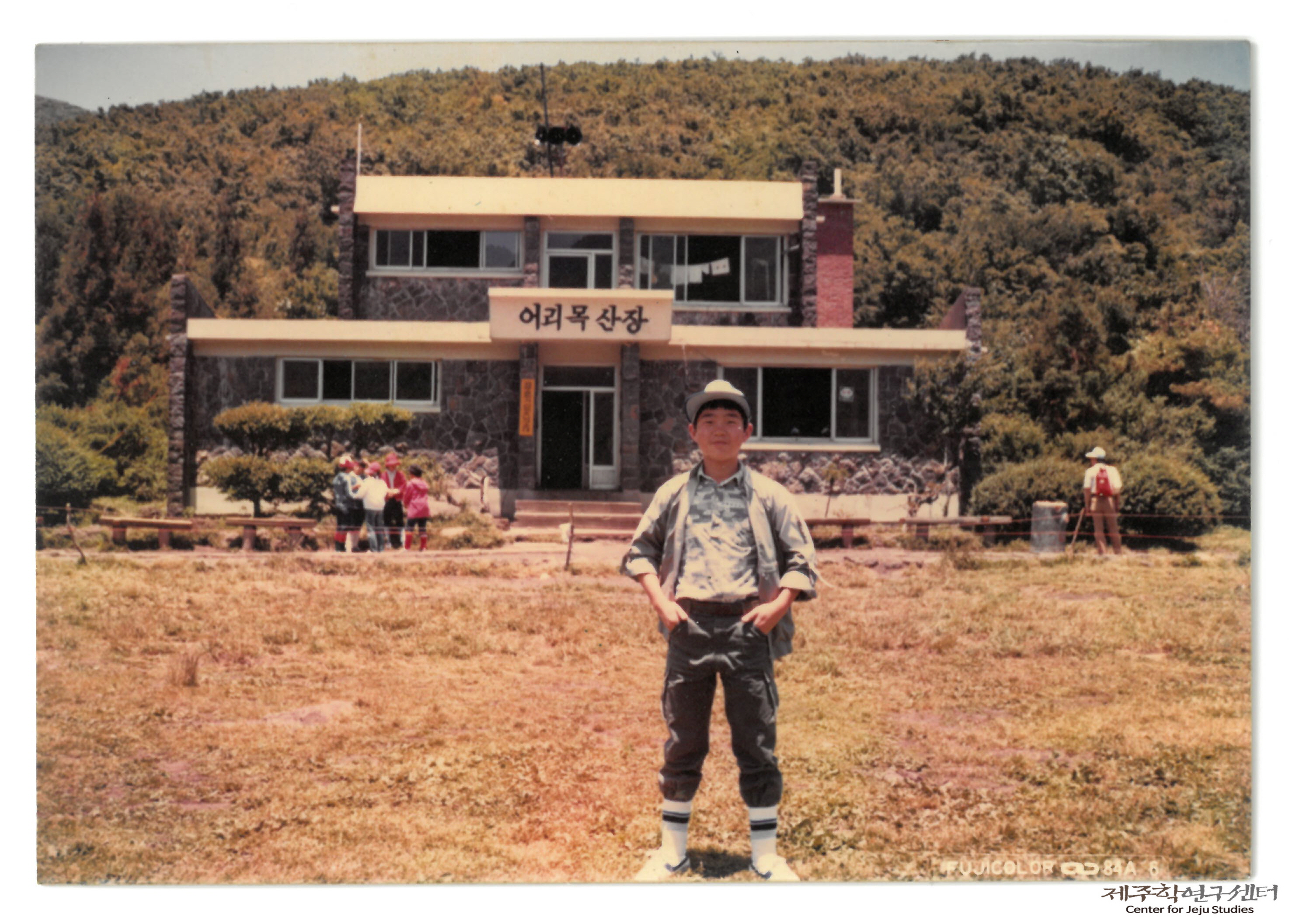 1987년 소장자 고영주 씨 큰아들이 제주오현고등학교 재학 중 친구들과 함께 한라산 어리목산장 앞에서 찍은 기념사진이다. 당시 제주도 내 고등학생에겐 한라산은 끈기와 인내를 기르기 위해 가던 수학여행지 중 하나였다고 한다. 한편 어리목산장은 한라산 등산객 쉼터였다.