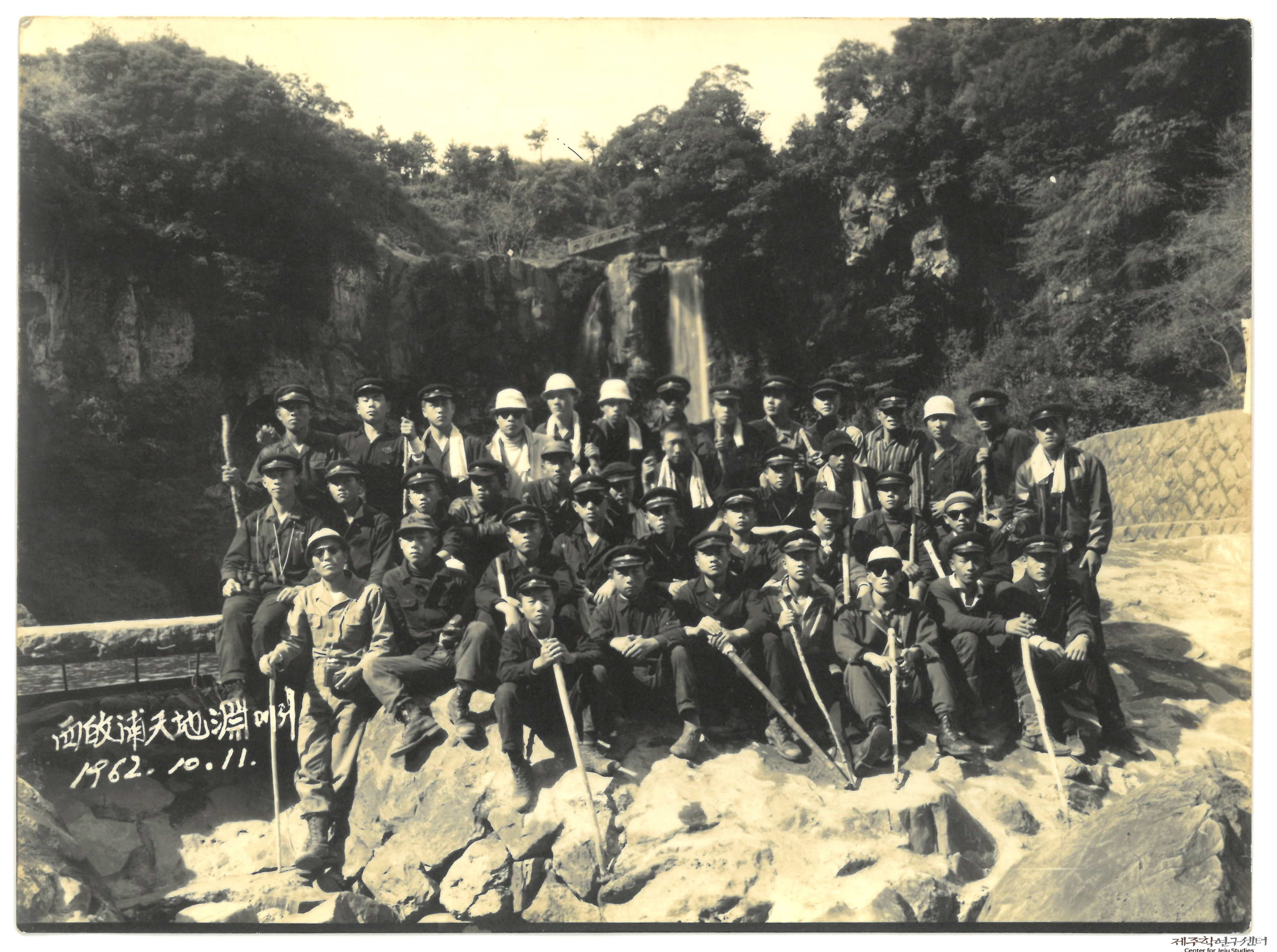 제주상업고등학교 2학년 수학여행 중 천지연폭포 앞에서 촬영한 기념사진이다. 당시까지만 하더라도 수학여행은 제주도 한 바퀴를 돌아보았다고 한다. 도 일주라고 하지만 구경 다닐 곳이 많지 않아 정방폭포, 천지연폭포, 성산일출봉, 만장굴 정도만 다녔다고 한다.