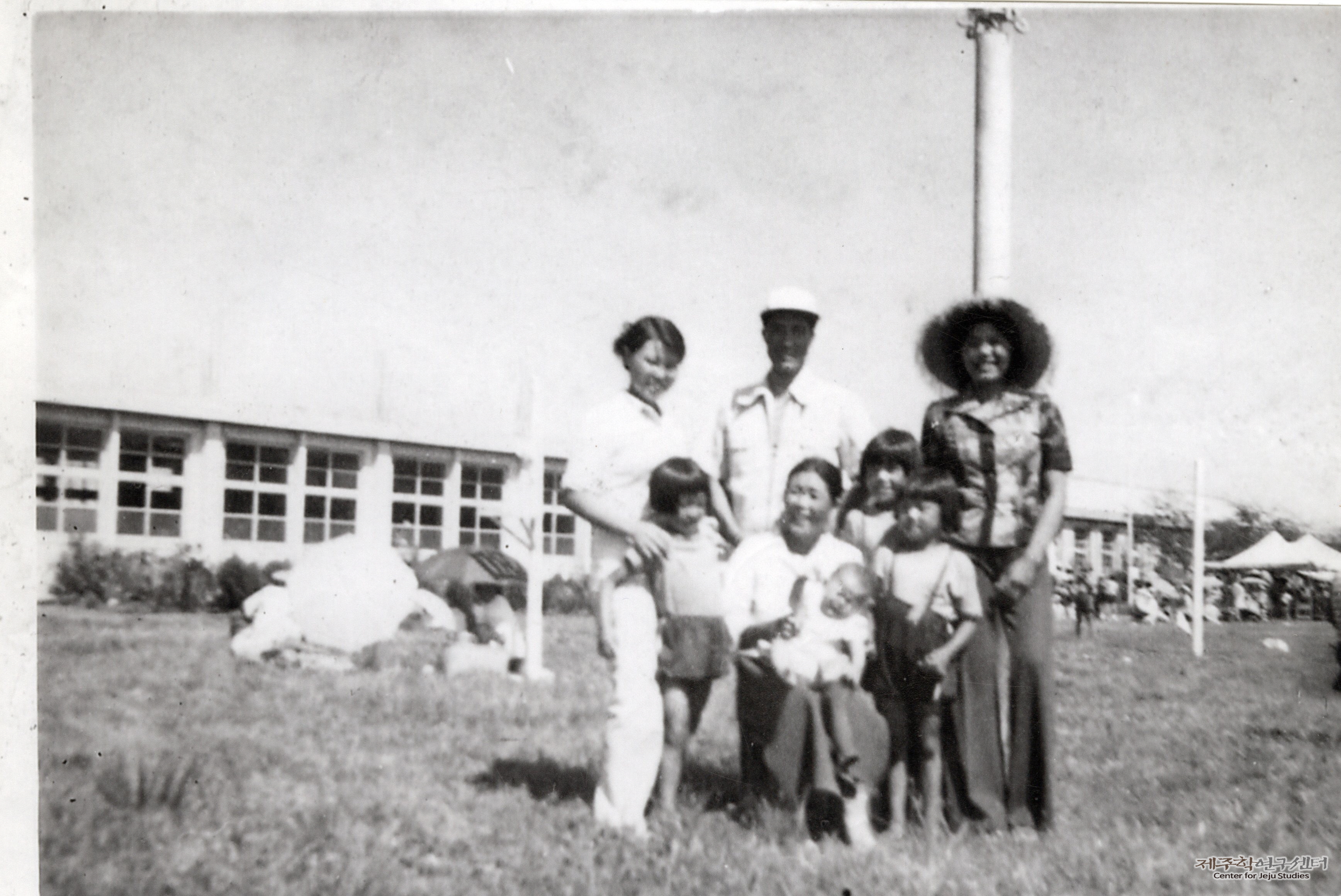 소장자 전경순 씨 시누이가 물메초등학교를 다니던 시절 온 가족이 운동회에 참여한 기념으로 찍은 사진이다. 어린 시누이 셋과 전경순 씨 부부, 시어머니까지 한자리에 모여 찍었다고 한다. 그들 뒤로 1970년대 물메초등학교가 보이고 그 주변에는 운동회에 참여한 사람들이 보인다. 당시까지만 하더라도 물메초등학교 운동회는 마을 잔치였다고 한다.