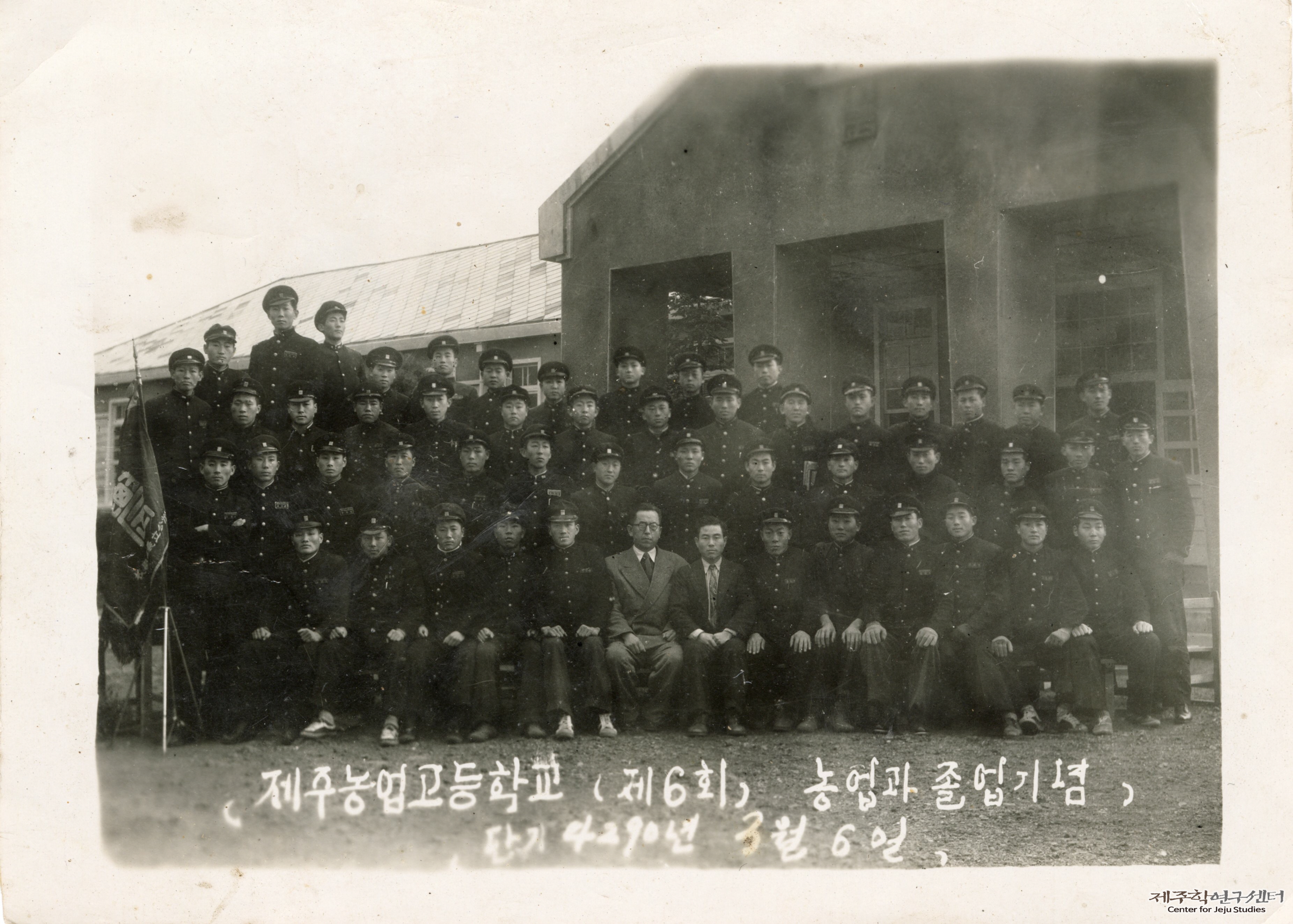 제주농업학교(현 제주고등학교) 본관 건물을 배경으로 촬영한 제6회 농업과 졸업기념 사진이다. 사진 중앙에는 양복차림의 최계순 교장(왼쪽, 안경 착용)과 농업과 담임 이남숙 선생님(오른쪽)이 앉아 있고 농업과 학생들이 주변에 서 있다. 양용규 씨는 맨 뒷줄 왼쪽 네 번째에 서 있다. 당시 학생들은 학교를 상징하는 '農(농)' 자 교표가 부착된 모자를 착용했다고 한다. 사진 하단에는 '제주농업학교 (제6회) 농업과 졸업기념', '단기 4290년 3월 6일'이라고 기록되어 있다.