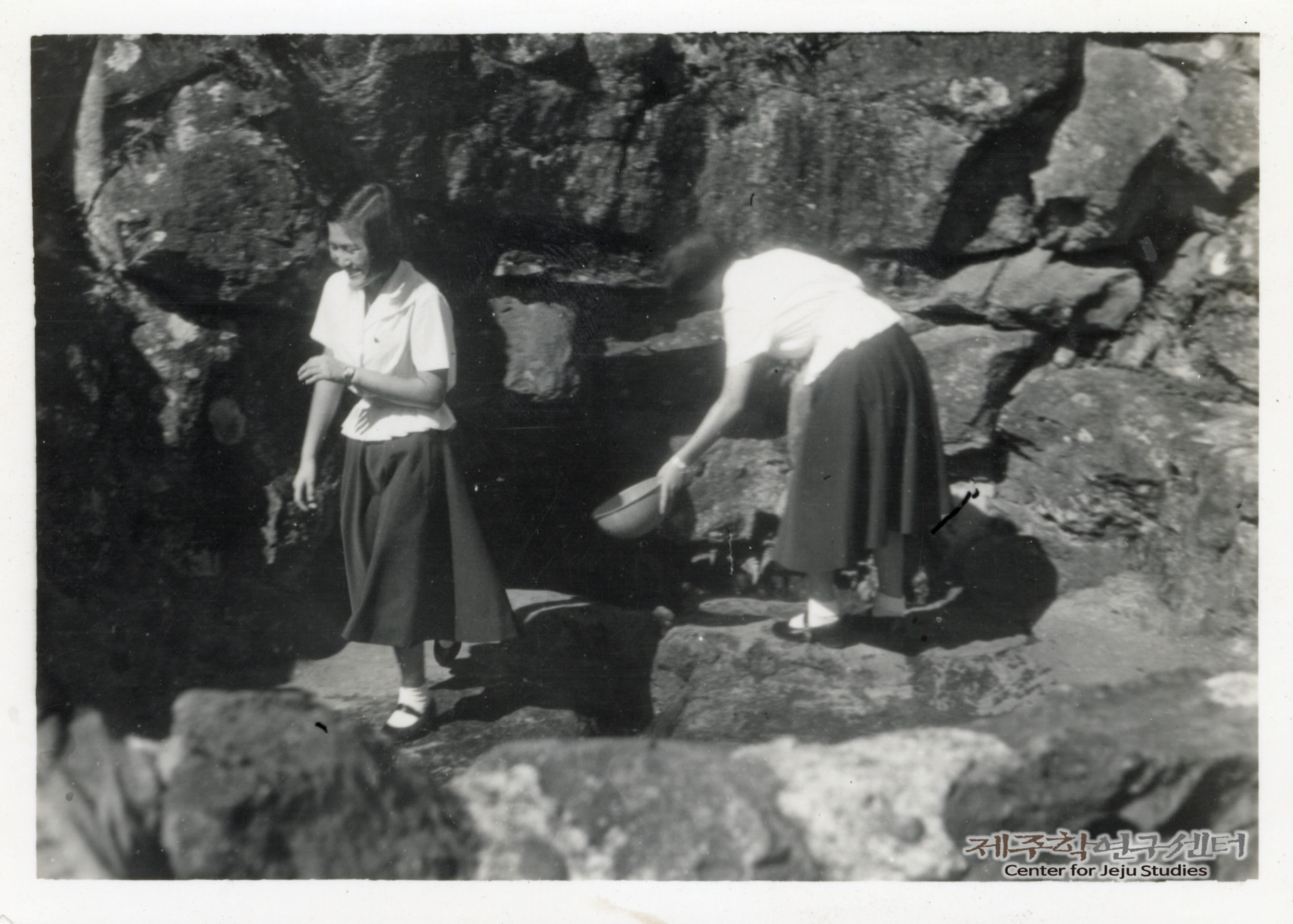 4) 사진 설명: 소장자인 양유정 씨의 딸이 고등학교 재학 시절 친구들과 계곡에서 찍은 사진이다. 당시 교복 상의는 흰색 블라우스이고, 허리에는 허리띠를 찼다. 하의는 검은색 교복 치마를 입었으며 흰색 양말에 검은색 구두를 신었다.