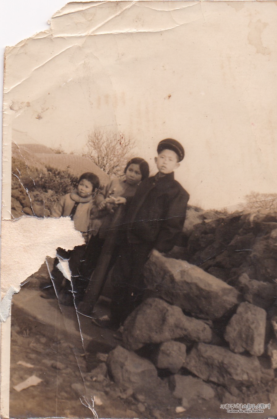 중학생이었던 강홍종 씨와 누이동생 두 명과 함께 수산리 옛 우물터 앞에서 찍은 사진이다. 이 우물터는 1970년대 중반 사라지고 마을에 공동수도가 설치되었다고 한다.