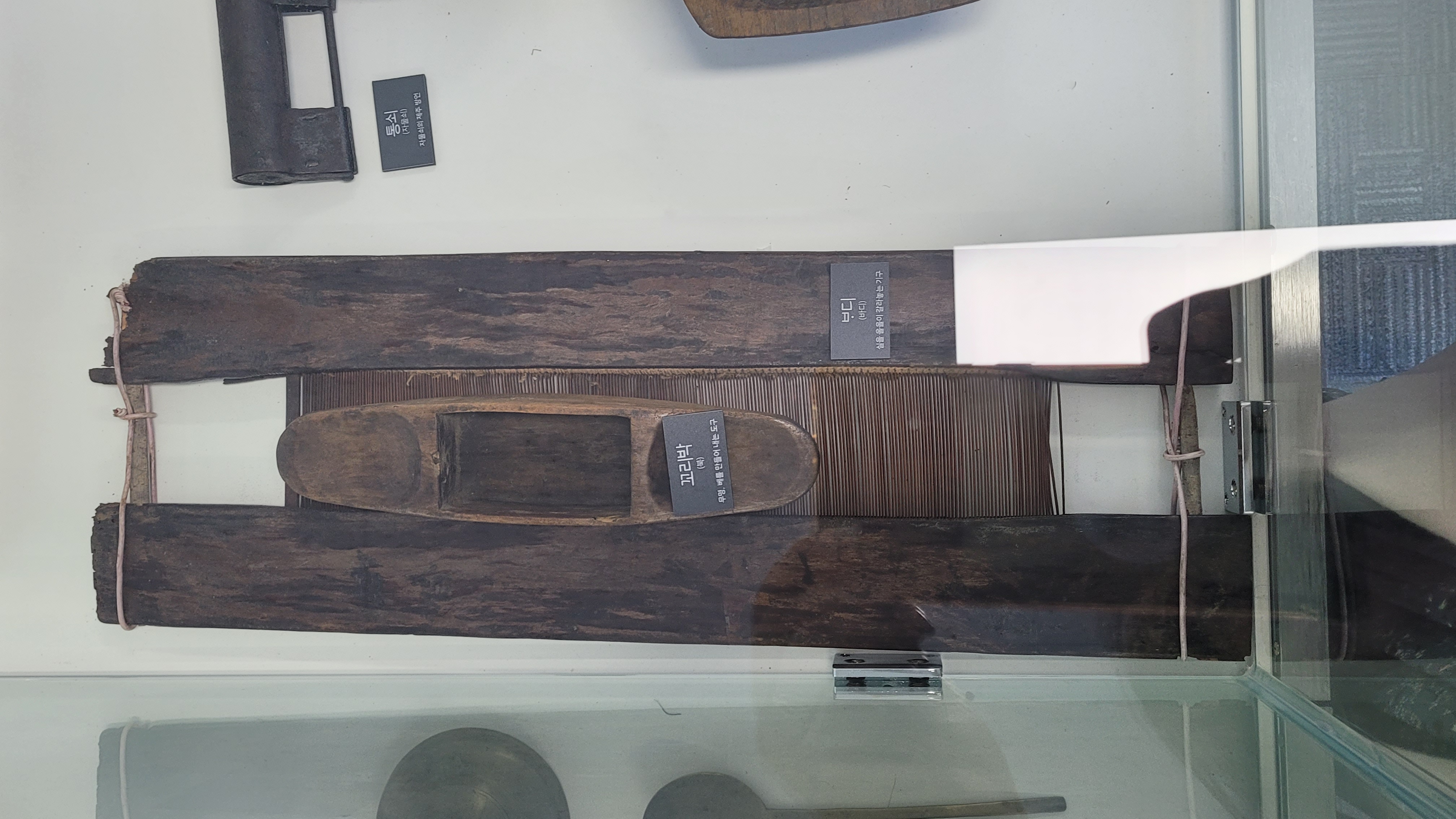 -자료 설명: 안덕면 감산리 김유헌 씨가 감산 작은 박물관에 기증한 '꼬릿박'과 'ᄇᆞ디'이다. '꼬릿박(북)'은 베틀에서 날실의 틈으로 왔다 갔다 하면서 씨실을 푸는 기구다. 'ᄇᆞ디(바디)'는 베틀 등에 딸린 기구의 하나로 가늘고 얇은 대오리를 참빗살같이 세워, 두 끗을 앞뒤로 대오리를 대고 단단하게 실로 얽어 만든다.