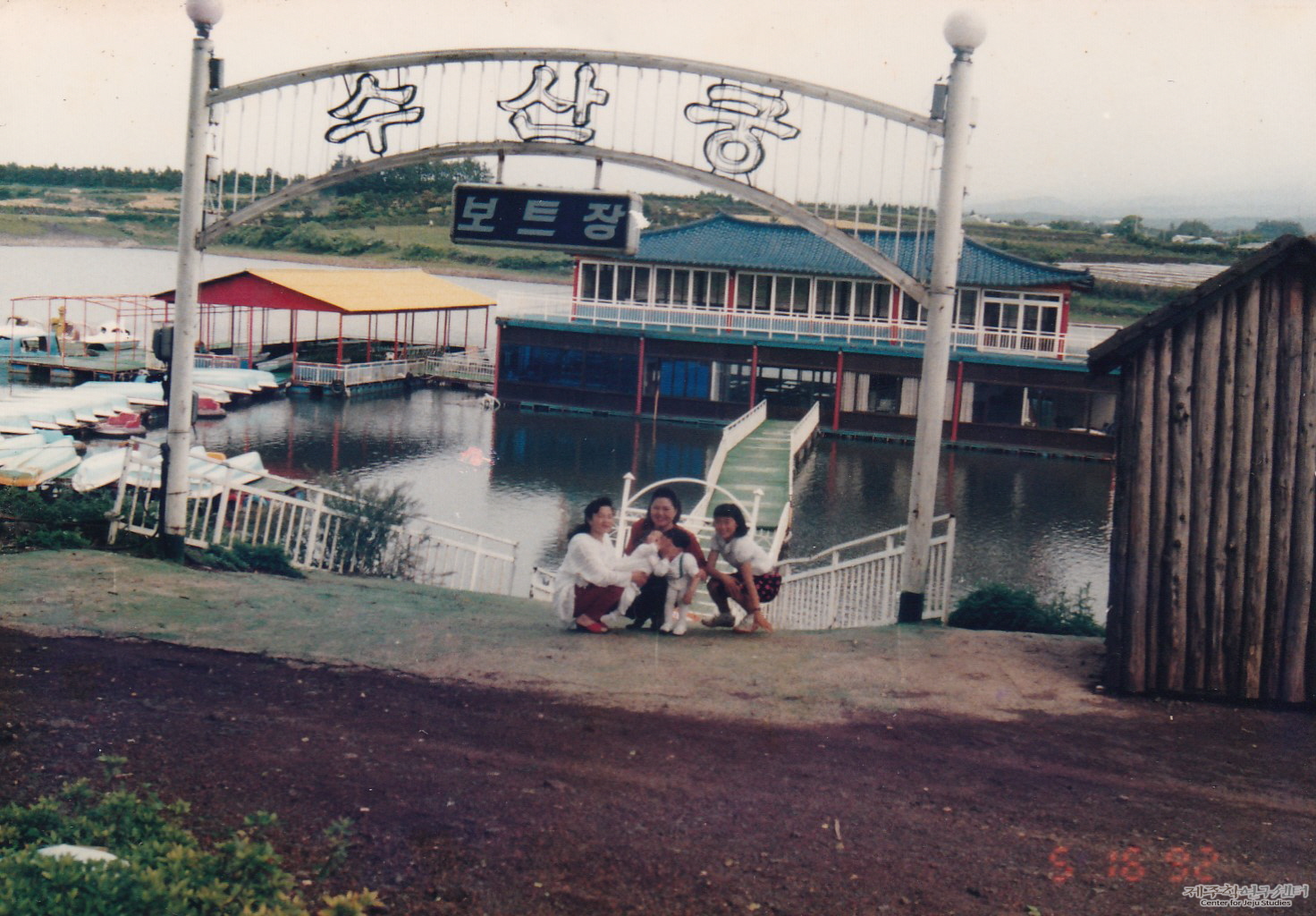수산유원지 안에 있는 보트장과 저수지를 배경으로 찍은 가족 모습이다. 사진 왼쪽부터 아내, 큰딸, 누나와 조카, 육촌 누이가 순서대로 앉아 있다. 이들 뒤편으로는 유원지 안에 있던 보트장 '수산궁'이 보인다. 한편 수산유원지는 1988~89년경 개장하여 2000년대 초반 폐장하기까지 제주도에 있는 휴양 시설이었다. 그중 '수산궁'은 마을 주민들의 결혼식이 치러지는 곳으로 사용하였다고 한다.