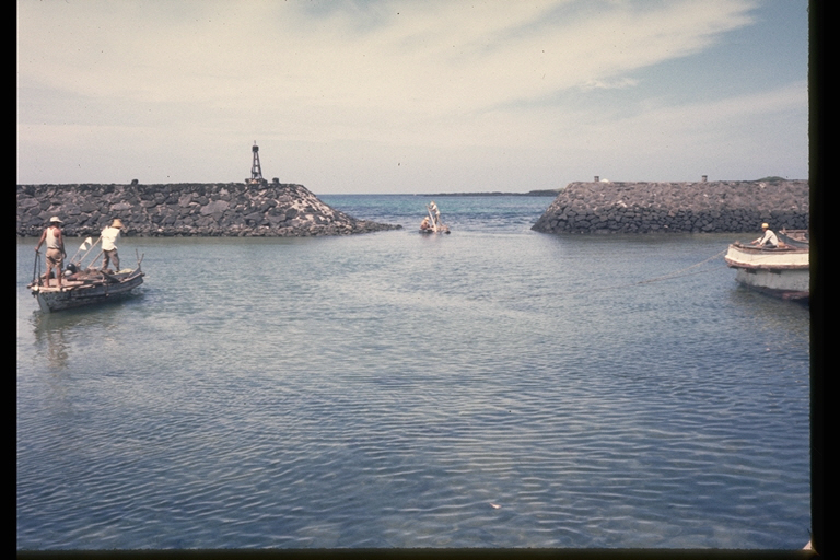 * 개요 : 북촌리 바다는 내항과 외항으로 되어 있다. 테우가 내항으로 들어오고 한 어선이 외항으로 나가고, 또 한 어선이 정박해서 낚시질을 하고 있는 바쁜 어촌 풍경이다. 테우는 육지와 가까운 바다에서 낚시질이나 해초 채취 등을 할 때 사용했던 통나무배이다. 여러 개의 통나무를 엮어서 만든 뗏목배라는 의미로 ‘테배’, ‘떼’ 등으로도 불렸다. 제주도 연안은 지반이 험한 암반으로 형성되어 있어 바다를 오가 일이 쉽지 않았다. 테우를 만들었던 구상나무는 부력이 뛰어나서 암반 지대에도 이용이 자유로웠다. 해안가 마을에서는 집집마다 테우를 마련하여 미역이나 듬북 등 해초를 걷어 옮기거나 자리돔을 자리그물로 잡는데 이용했다.