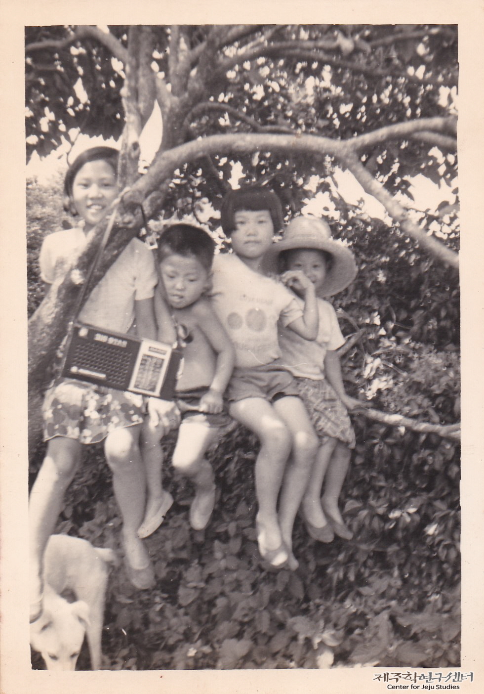 소장자 강남승 씨의 사 남매가 마당에 있는 감나무에 올라타며 노는 모습이다. 왼쪽부터 큰딸, 막내아들, 둘째딸, 막내딸 순으로 가지에 앉아 있다. 아이들은 면티에 치마 또는 바지를 입었고 아들은 흰색고무신, 딸들은 검정고무신을 신고 있다. 한편 큰딸 앞에 걸려 있는 트랜지스터라디오는 당시 유행하던 오락거리였다고 한다.
