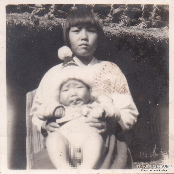 소장자 양용규 씨 처가 마당에서 처제가 소장자의 큰아들을 안고 있다. 처제는 저고리치마를 입고 있으며 1살쯤 된 큰아들은 털모자를 쓰고 있다. 평소 카메라를 갖고 있던 소장자의 셋째 동서가 이 모습을 촬영한 것이라고 한다.