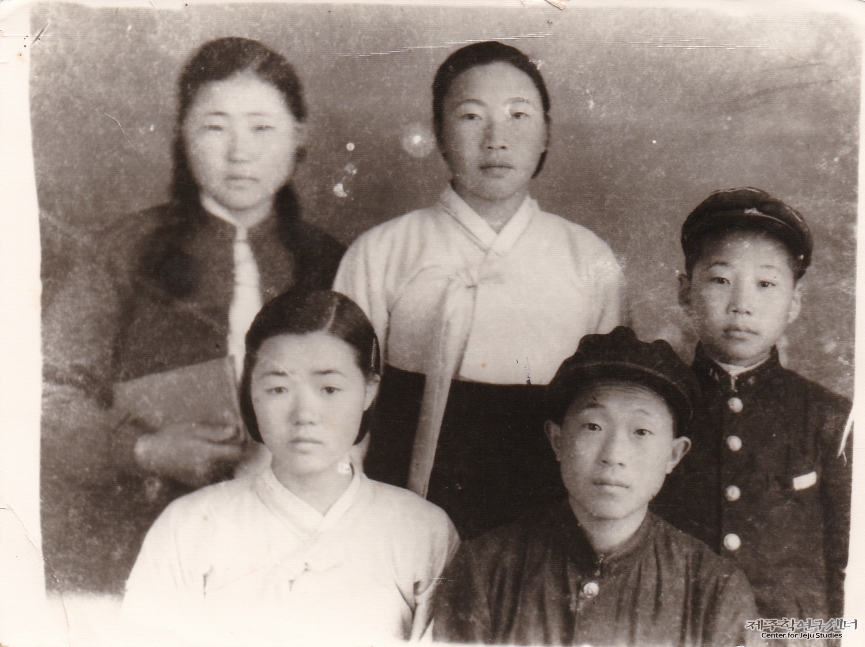 소장자 양용규 씨가 제주농업학교(현 제주고등학교)에 입학하여 그 기념으로 온 가족이 모여 촬영한 사진이다. 양용규 씨(앞줄 중앙)는 빳빳한 교복 차림을 하고 앉아 있고 그 왼쪽에 한복을 입은 아내가 함께했다. 소장자 누님(뒷줄 가운데)과 양옆으로 사촌동생이 서 있다. 양용규 씨 설명에 따르면 당시 누님의 적극적인 권유로 입학 기념 사진을 촬영했다고 한다. 장소는 제주시 서문통에 있는 한 사진관이라고 한다.