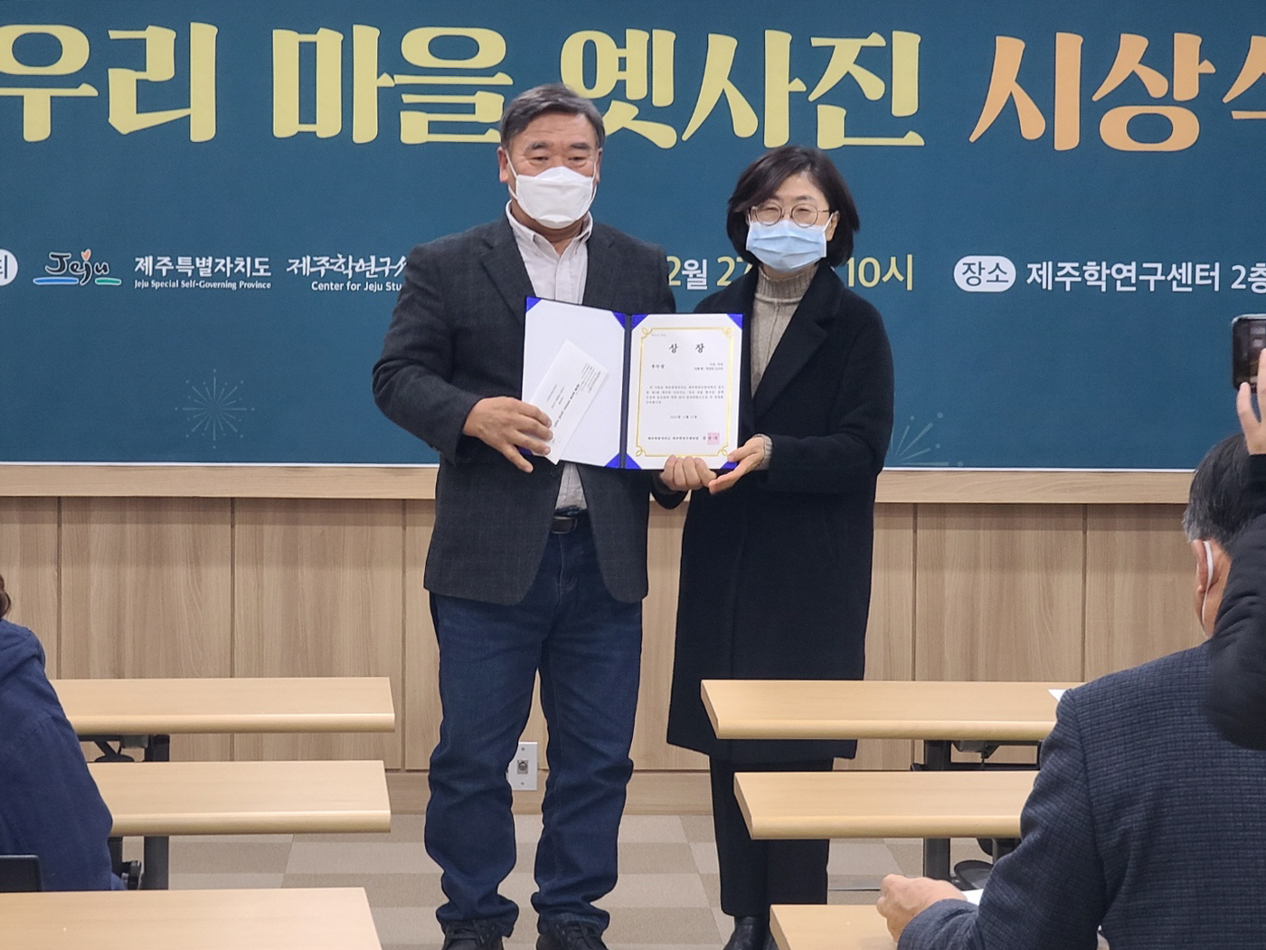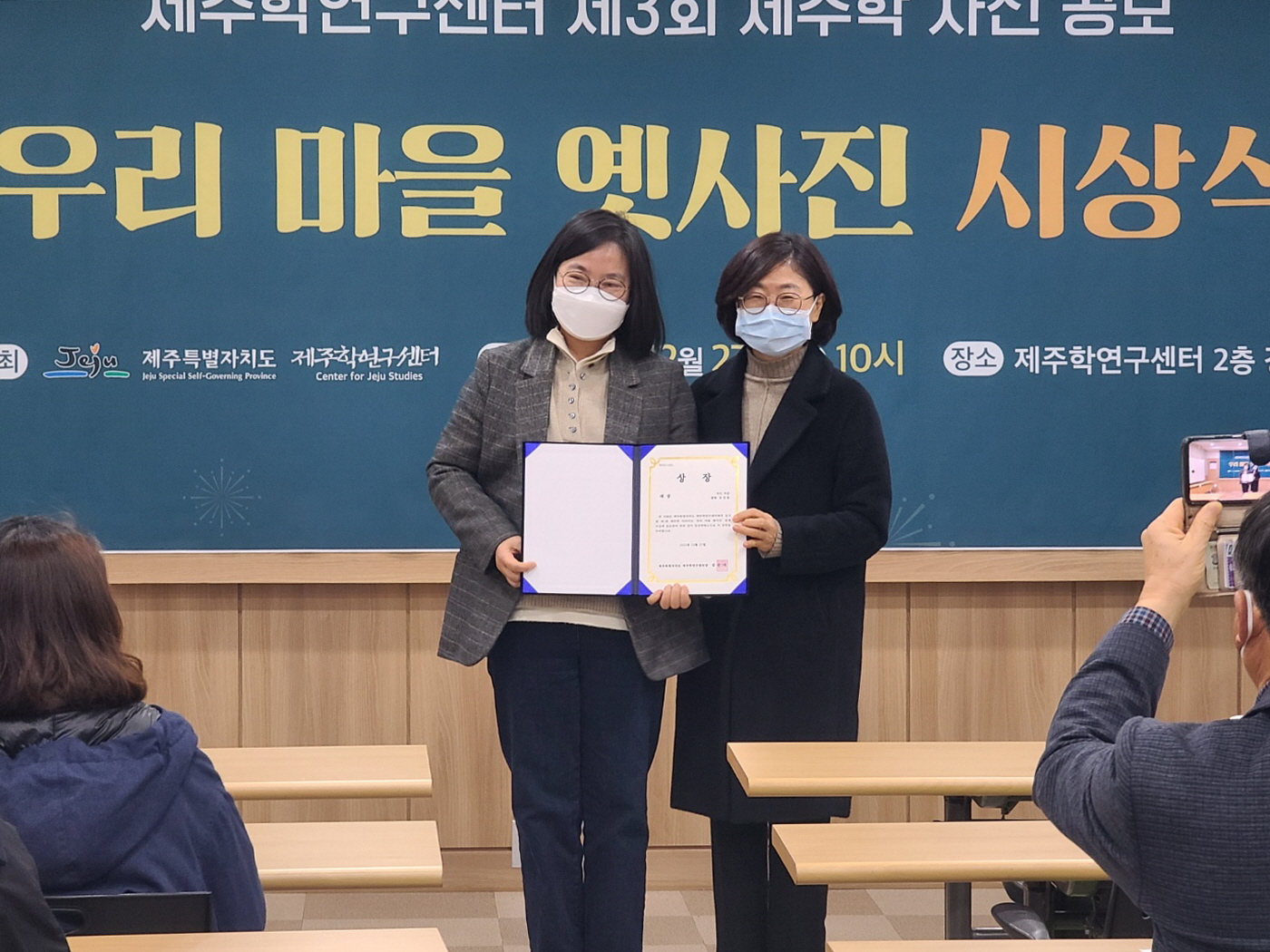 □ 제주학연구센터(센터장 김순자)는 지난 4월부터 10월까지 공모한 ‘제3회 제주학 아카이브 옛사진 공개 수집’사업(주제: 우리 마을 옛사진) 수상작에 대한 시상식을 12월 27일 오전 10시 제주학연구센터 강의실 마레에서 개최하였다.